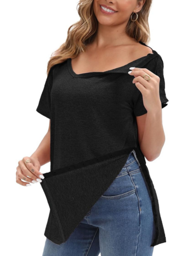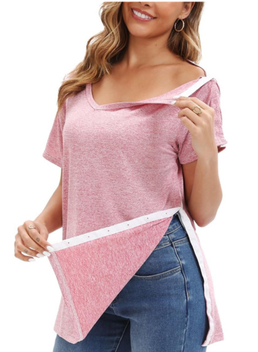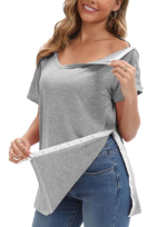 Shirts for Women Tear Away V Neck Dual Access Snap Chemo Port Shirts Short Sleeve Adaptive Clothing