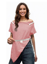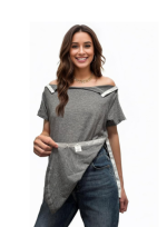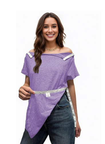 Shirts for Women Tear Away V Neck Dual Access Snap Chemo Port Shirts Short Sleeve Adaptive Clothing